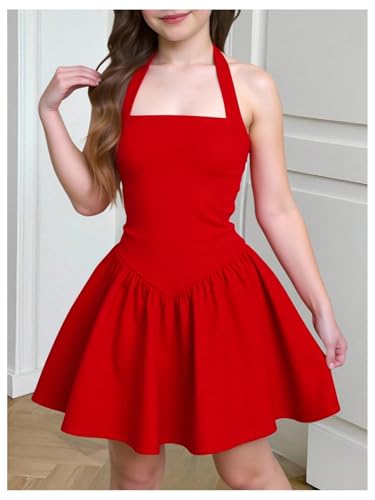 • Features: Summer sleeveless flowy short dress for girls, fit and flare dress, tight waist, halter neck, fancy dress for special occasions