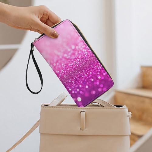 HOT ! Women's Cute Decor Long PU Zipper Wallet, Travel Purse Fashion Design, Huge Storage Capacity Purse With Rope Pink Glitter Pattern