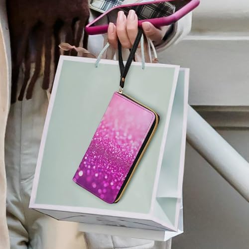 Women's Cute Decor Long PU Zipper Wallet, Travel Purse Fashion Design, Huge Storage Capacity Purse With Rope Pink Glitter Pattern 3