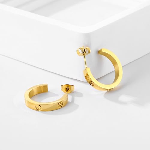 • This Women's Gold Earring:is made of low allergenic surgical 316L stainless steel and has a long service life. The sparkling cubic zirconia is cleverly and perfectly embedded in the earrings, fully reflecting the love that makes you more beautiful. Perfect daily accessories add a touch of style to your clothing.
