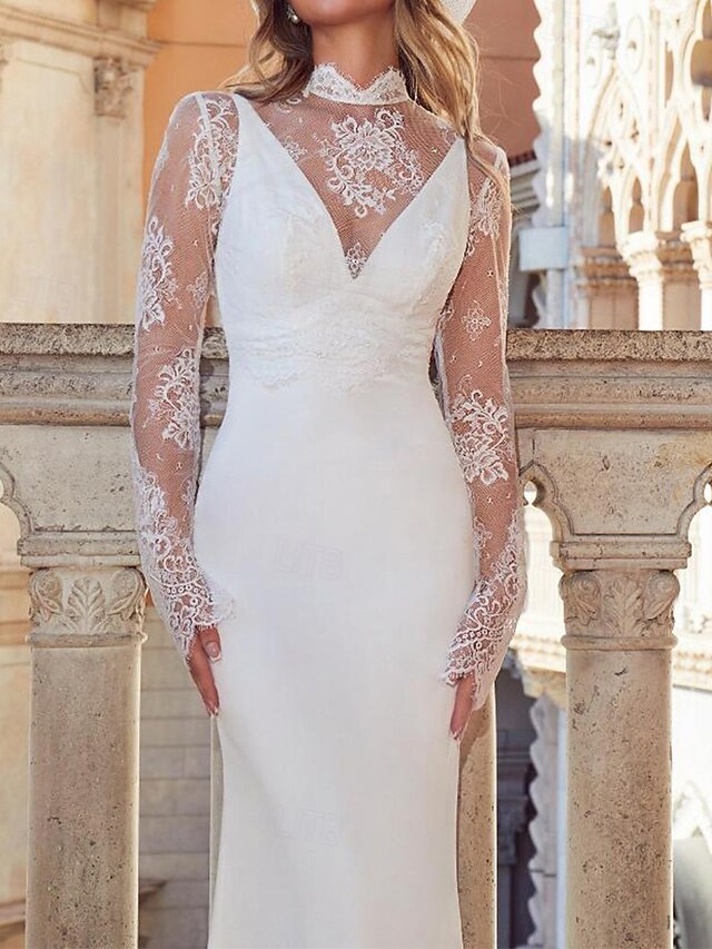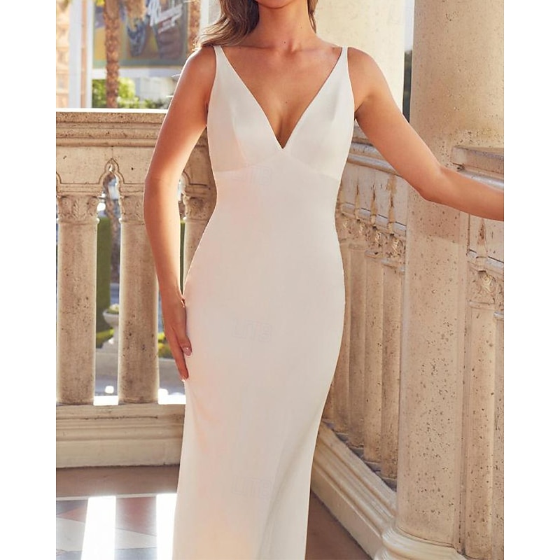More information about Casual Wedding Dresses Mermaid / Trumpet Detachable Cape V Neck Long Sleeve Floor Length Stretch Crepe Bridal Gowns With Appliques