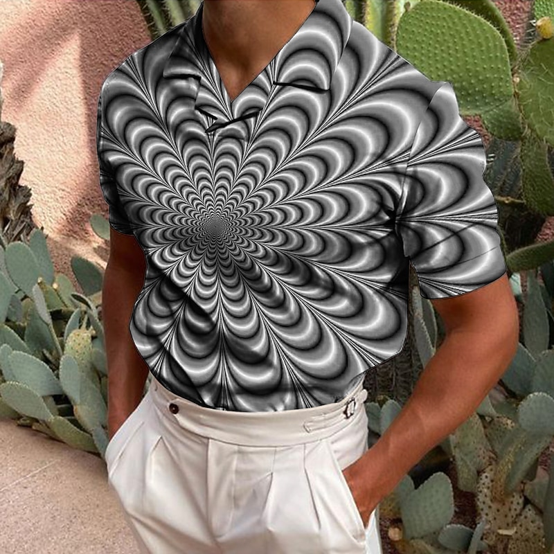 Men's Collar Polo Shirt Optical Illusion Golf Shirt Turndown Green Blue Purple Black 3D Print Casual Daily Short Sleeve Button-Down Print Clothing Apparel Fashion Designer Casual Breathable / Sports 7