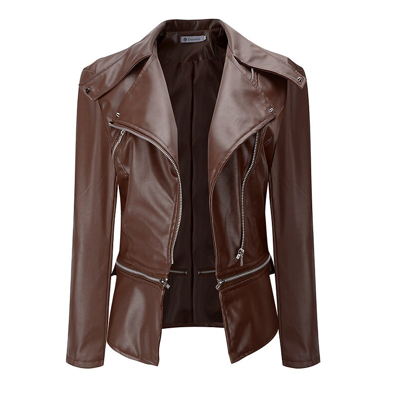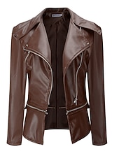 More information about Women's Faux Leather Jacket Casual Regular Fit Outerwear Long Sleeve Winter Fall Black Wine Brown Streetwear Going out M L XL