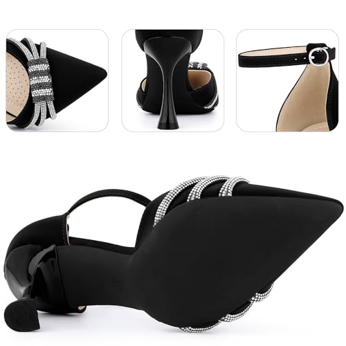 Perphy Pointed Toe Ankle Strap Rhinestone Stiletto High Heel Pumps for Women 3