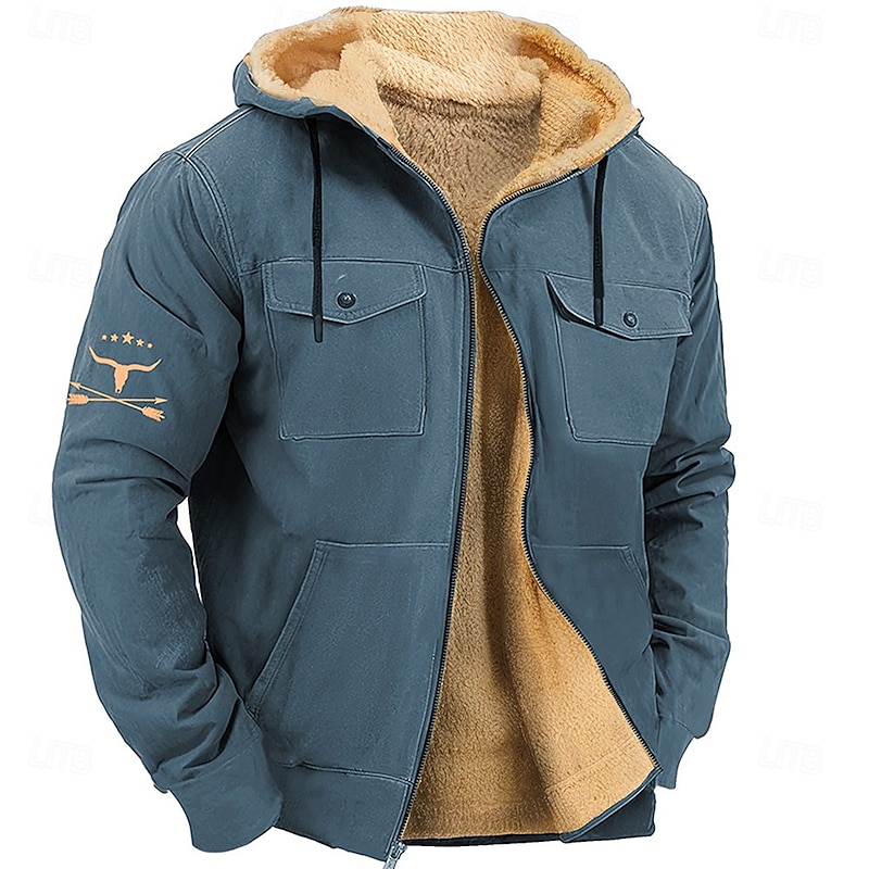 More information about Men's Cow Fleece Hoodie Hoodies Fashion Cool Long Sleeve Hooded Holiday Streetwear Blue Brown Zipper Pocket Fall Winter Designer