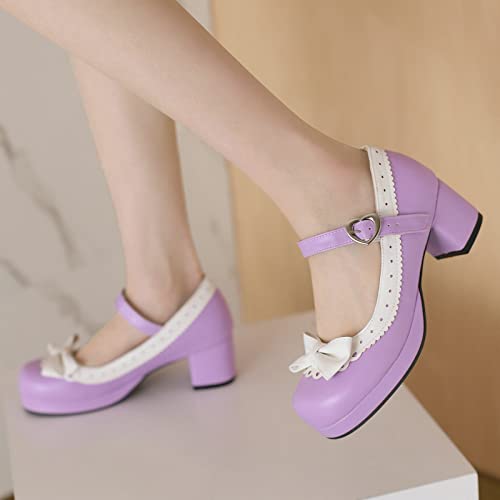 Women Bow Mary Jane Shoes Kawaii Pumps Platform Chunky Heeled Vintage Pumps Elegant Lolita Dress Shoes 7