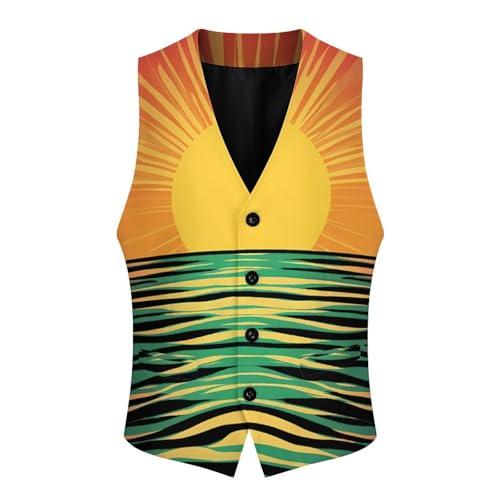 HOT ! Sunrise Sunset-Sunshines Men's Suit Vest Slim Fit Business Dress Party Pattern Waistcoat Vest Top