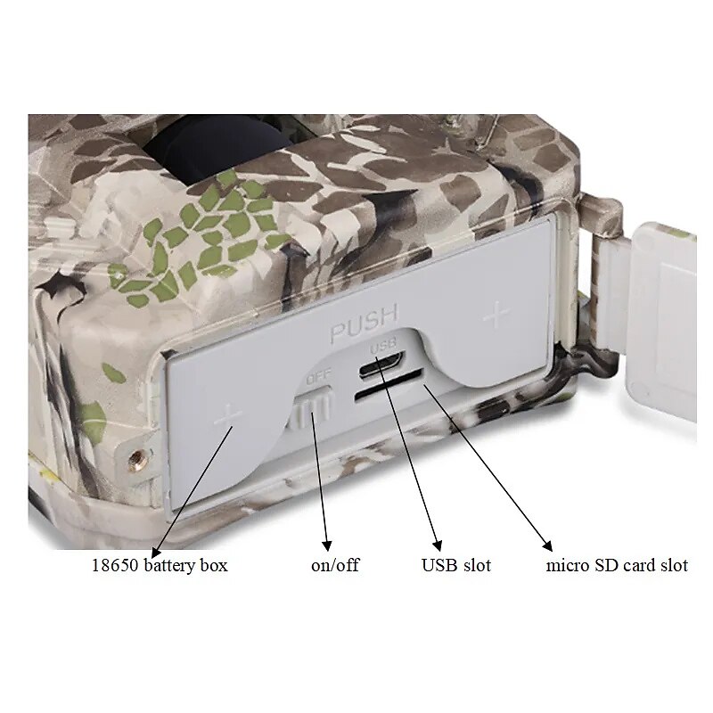 Highlights - PIR sensors with a large detection angle of 110 degrees and a lens angle of up to 120 degrees, providing comprehensive coverage for motion detection - Night sensor distance of up to 15 meters, ensuring clear and detailed images even in low light conditions - Lightning-fast firing speed of 0.8 seconds, capturing every moment with precision and speed - Customize up to 3 photos to be fired with each trigger, allowing for more versatile and dynamic shots - Supports TF memory cards with a maximum capacity of 32GB, providing ample storage space for photos and videos - Equipped with a 12-megapixel CMOS sensor, delivering high-quality and vibrant images - Powered by rechargeable battery 2 * 18650 (not included), offering up to 12 months of battery life for extended usage - Utilizes HEAT DISSIPATION SAFE, RELIABLE AND GOOD PCB Material for efficient heat dissipation, ensuring durability and safety - Compact and lightweight design for easy transportation and space-saving storage - Wide range of applications including extreme sports, outdoor sports, underwater sports, cycling, and more.