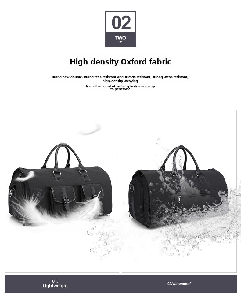 More information about Snap on zipper suit suit travel bag carry on overnight bag waterproof leather duffel bag men and women convertible garment bag sports bag two-in-one hanging suitcase (Oxford canvas, black)