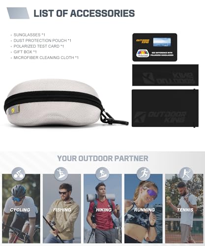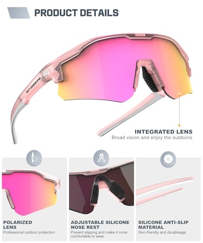 • High Definition Polarized Lenses: OUTDOORKING polarized sunglasses men use UV400 lenses that block full harmful UVA and UVB rays. The lenses are scratch-resistant and oleophobic, and they balance the colors to give you a better visual experience. This sports sunglasses can effectively prevent wind and sand, providing protection for your eyes, ergonomic nose pads and textured temple grips ensure slip-free stability, even during high-speed motion