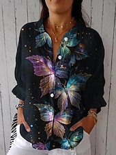 More information about Women's Shirt Butterfly Daily Casual Long Sleeve Shirt Collar Regular Tops Daily Holiday Buttons Print Navy Blue Summer Spring Fall