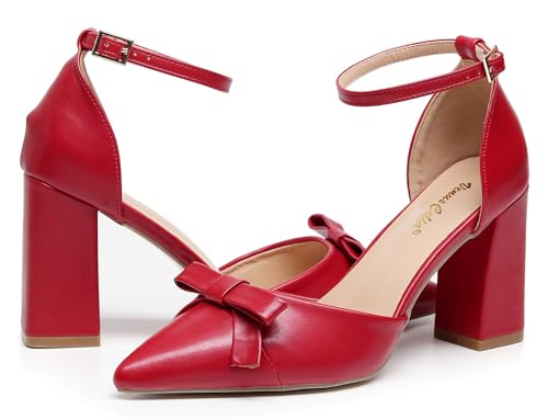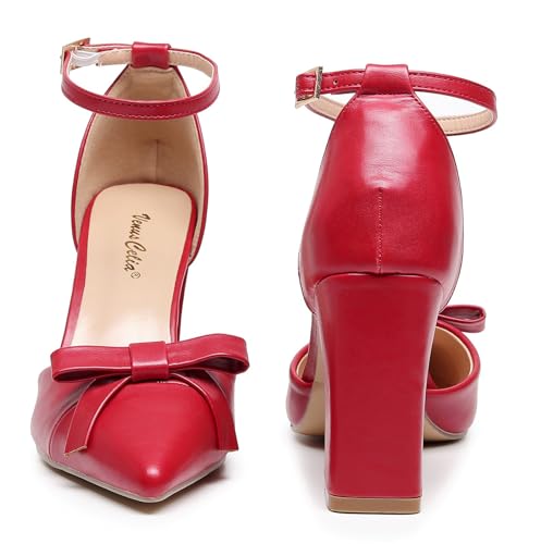 VenusCelia Women's Brightest Strap Pump Block Heel Shoe 4