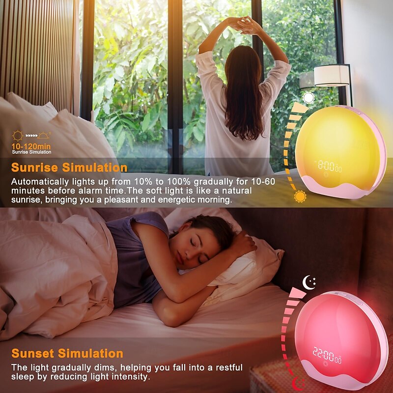 $75.99 - LED Smart Light Sunrise Alarm Clock Wake Up Light for Heavy Sleepers, with 12 Colour Led Night Light, 5 Sets of Nature Sounds and Fm Radio, A Smart Sleep Trainer 2025. Shop for cheap Smart Decorative Lights online? Buy at lightinthebox.com on sale today!