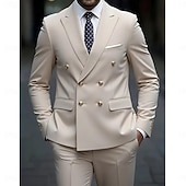 More information about Men's Business Casual Wedding Suits Peaked Lapel Beige Formal Solid Colored Tailored Fit 2 Piece Double Breasted Six-buttons