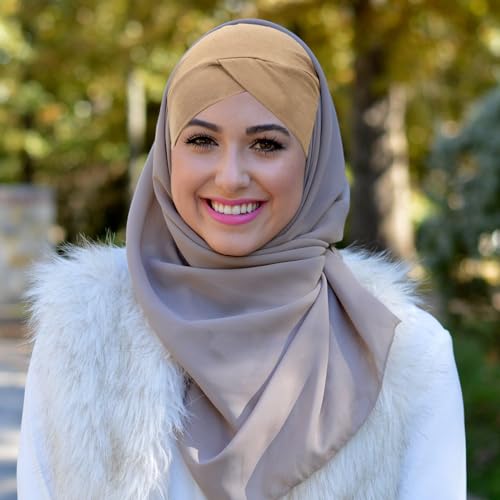 HOT ! XEPST 4 PCS Hijab Undercap for Women, Islamic Muslim Under Hijab Cap Cross Turban Underscarf Solid Color Undercap Bonnet Inner Head Scarf Head Wraps Hair Turbans for Women Chemo Headwear Sleep Cap