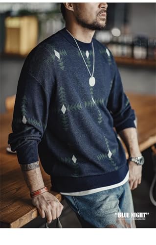 Men's Retro Pattern Knit Pullover Sweater Loose Fit Round Neck College Style Soft Long Sleeve Christmas Casual Top 7