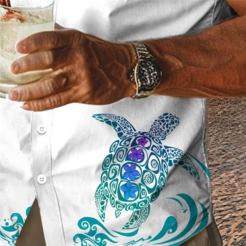 More information about Men's Tropical Turtle Marine Life Shirt Summer Hawaiian Shirt Aloha Shirt Short Sleeve Shirt Cuban Collar Vacation Hawaiian Resort Style Outdoor Vacation Hawaiian Blue Purple Green S M L