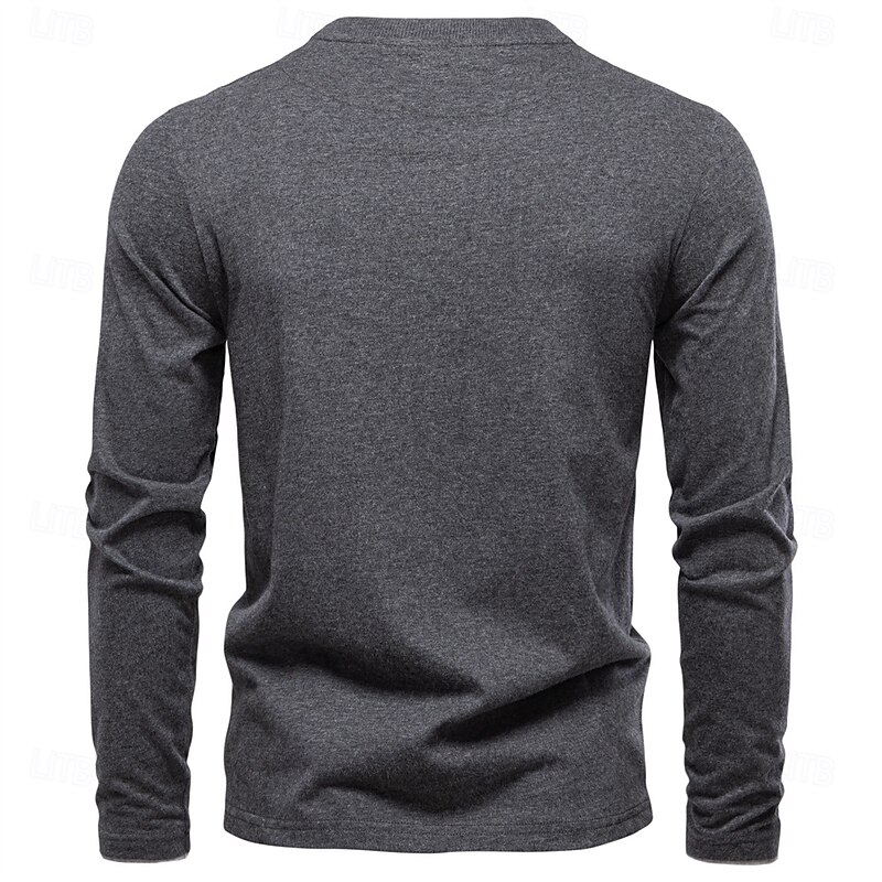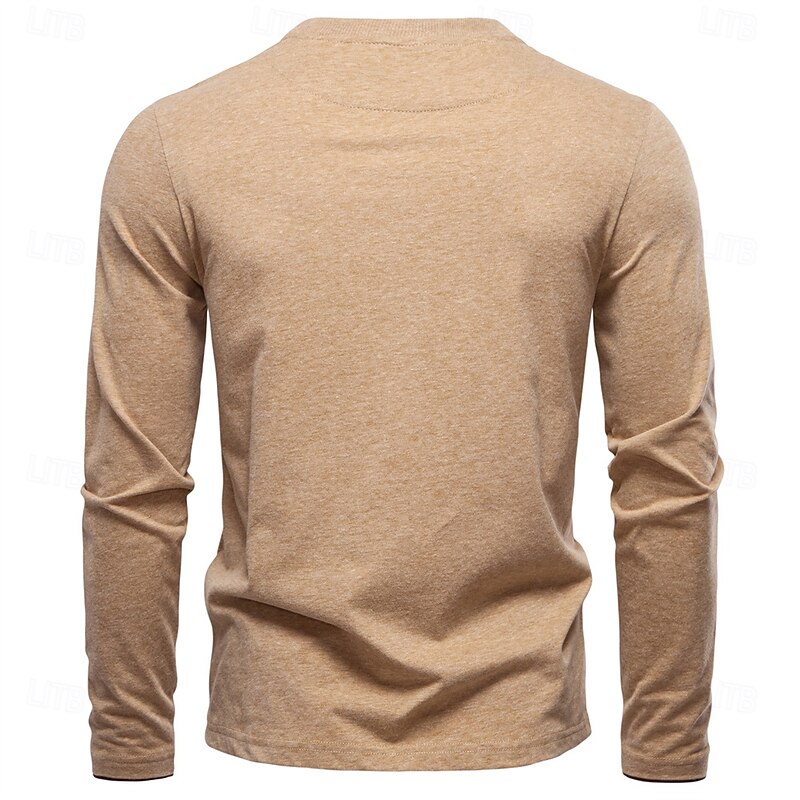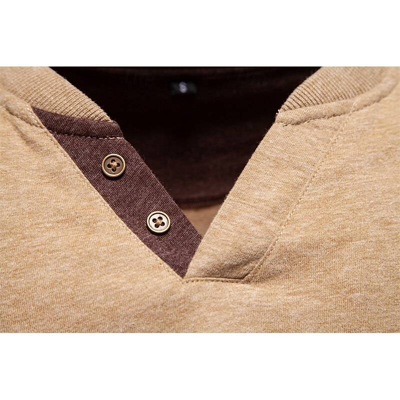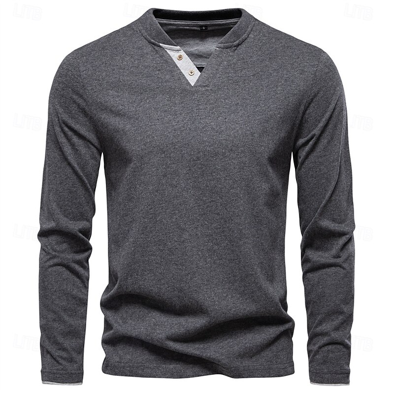 More information about Men's Cotton Shirt Long Sleeve Plain Cool Daily Casual Color Block Buttons Henley School Training Outdoor All Seasons Colored Gray Dark Navy khaki Henley T-Shirt