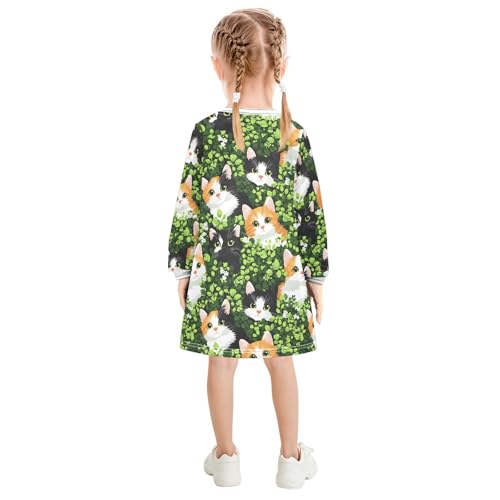 Girl Dress Cat Hidden in Green Leaves Pattern Long Sleeve Fall Winter Casual Basic Dress 6