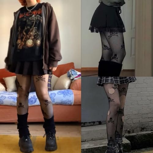 • High-waisted skull patterned tights. Perfect for gothic or punk-inspired outfits, perfect for a masquerade or a Halloween festival. Silky smooth pantyhose is also suitable for dresses, shirts, shorts, high heels, booties, boots and as a gift for friends and family.