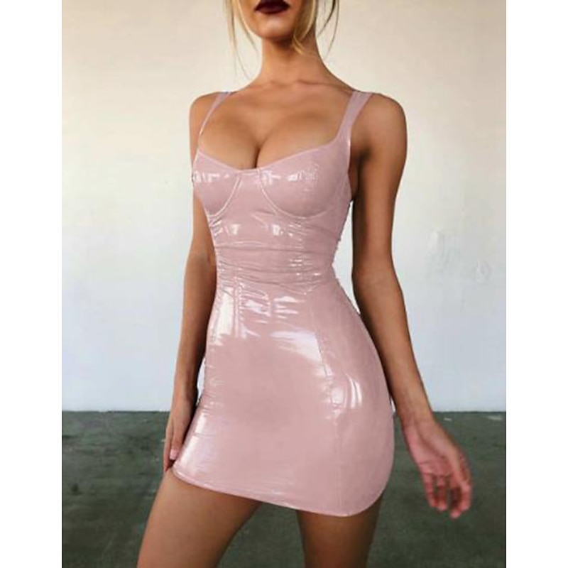 FormalLeather Homecoming Party Wear Club Dress Low Cut Sleeveless Short / Mini Bodycon Dress Spandex with Sleek  dress to impress 1