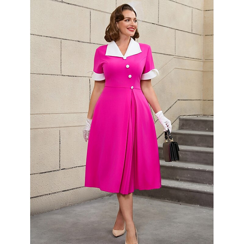 HOT ! Retro Vintage 1950s Rockabilly Midi A Line Dress Flare Dress Plus Size A-Line Fancy Dress Women's Vacation Homecoming Party & Evening Adults Dress Spring & Summer