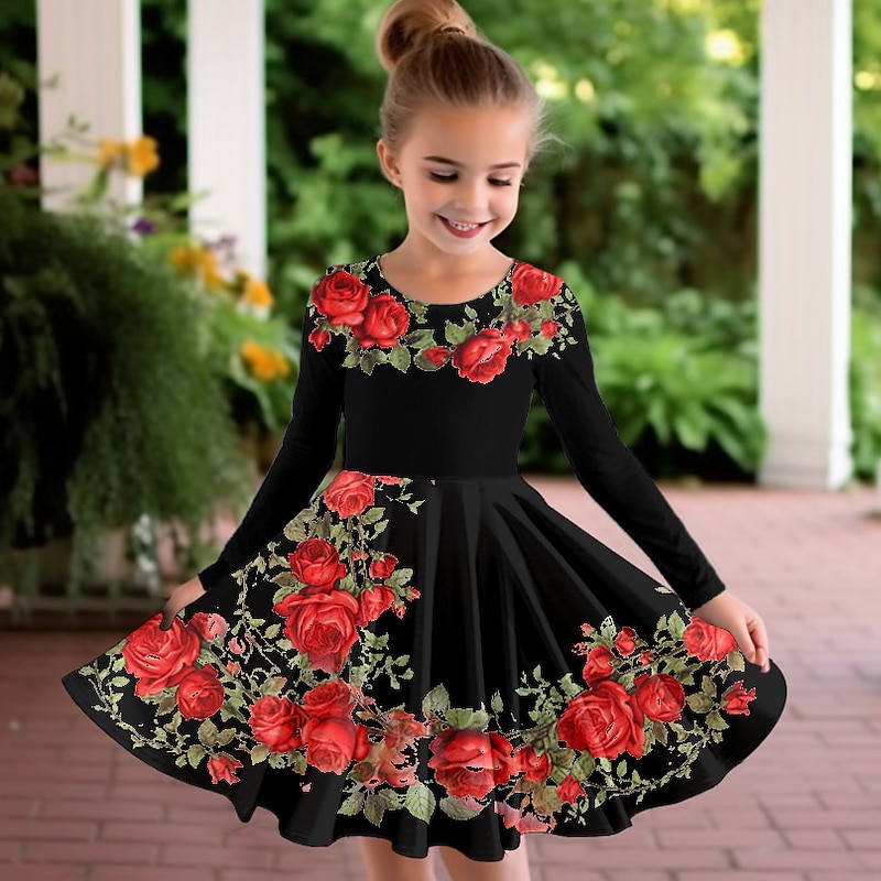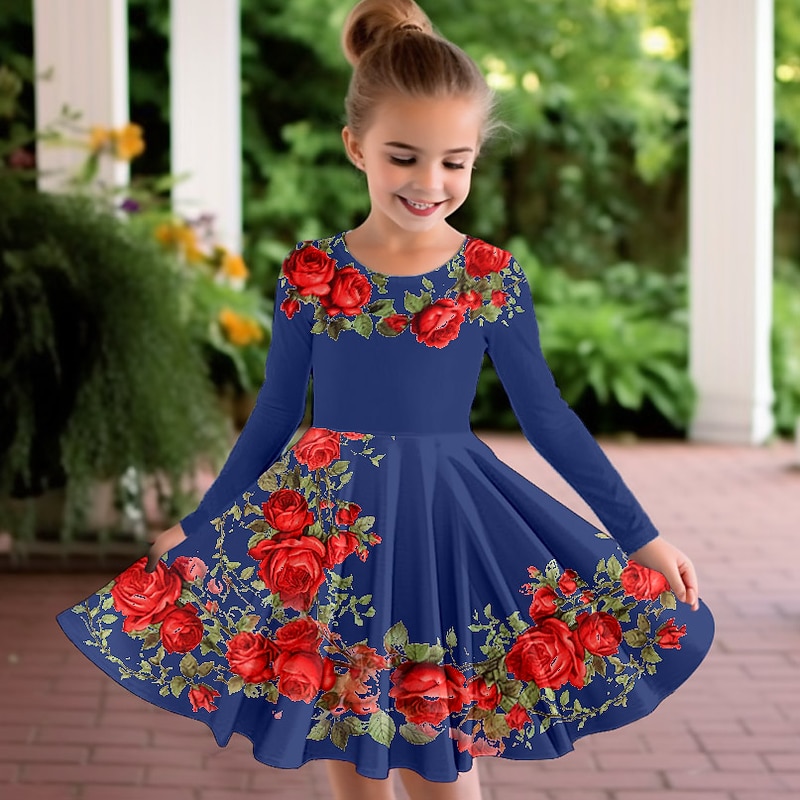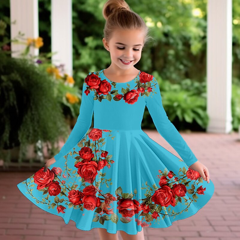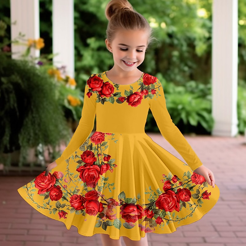 More information about Easter Girls' 3D Floral Graphic Butterfly Dress Long Sleeve 3D Print Summer Fall Vacation Sports & Outdoor Daily Cute Casual Beautiful Kids 3-12 Years Casual Dress A Line Dress Above Knee Regular Fit