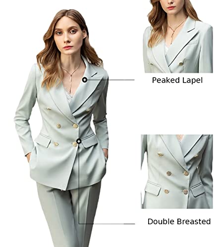 2 Piece Women's Peaked Lapel Classic Fit Outfit Double Breasted Formal Business Blazer Pant Suits 4