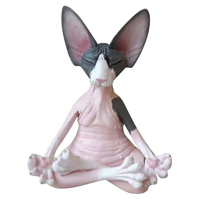 New Cat Figurine Sphynx Meditation Statue Yoga Animal Cat Meditate Art Sculpture Micro Decoration Garden Home Office Ornament 18