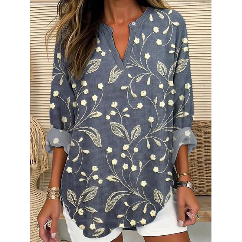More information about Women's Blouse Tunic V Neck Long Sleeve Boho Casual Cotton Linen Floral Basic Regular Tops Daily Buttons Print Pink Red Navy Blue Blue Purple