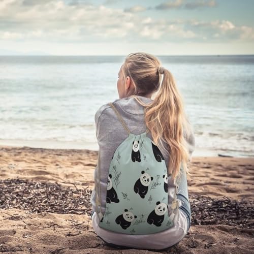 Cartoon Panda Bear Drawstring Backpack String Bag Sackpack for Gym Shopping Beach Sport Yoga 3