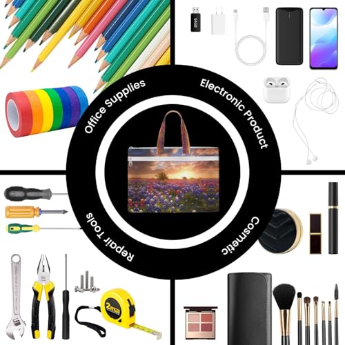 Texas Bluebonnets Scenery Print Canvas Tote File Bag Suitable For Studying, Traveling, Traveling, Commuting, Etc. 5