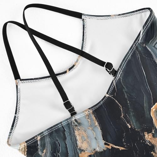 Gold White Black Marble Pattern Girls One-Piece Swimsuit Beach Swim Bathing Suit 5