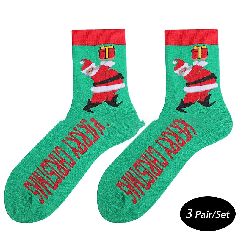 More information about Men's 3 Pairs Crew Socks Men Socks Xmas Socks White Pink Color Cartoon Christmas Casual Daily Basic Medium Fall Winter Thermal