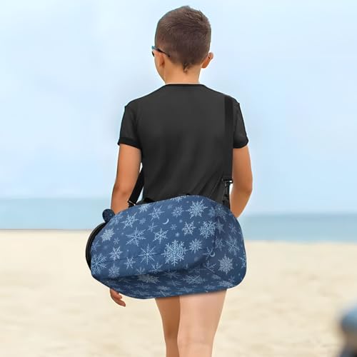 Dark Blue Snowflakes Girl's Gym Duffel Bag with Shoes Compartment Lightweight Weekender Overnight Duffel Bag for Beach Swim Bags Pool Sports 3