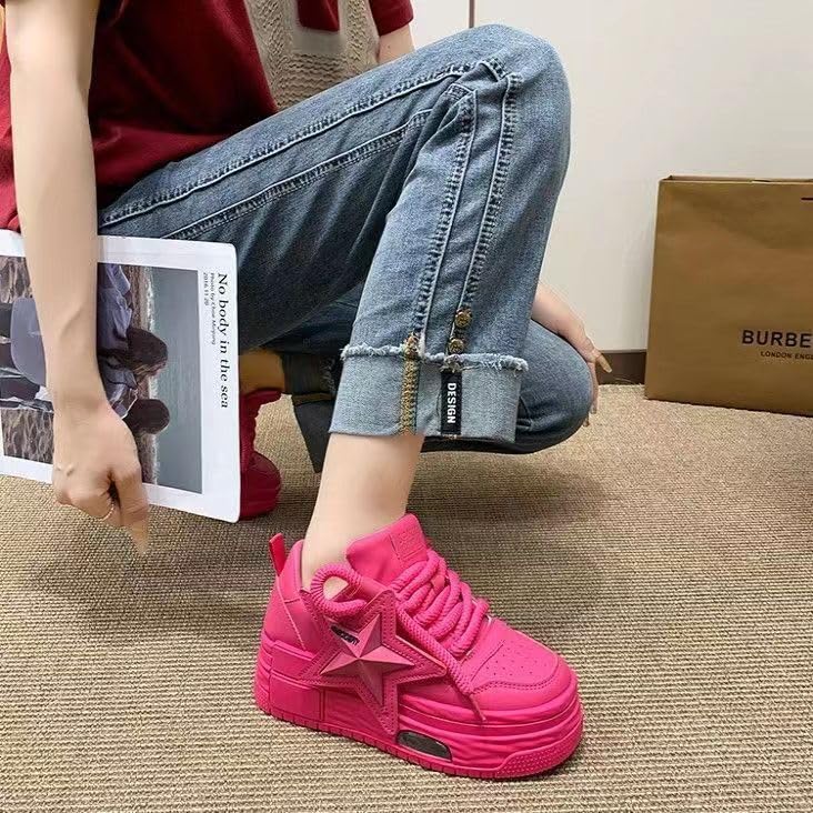More information about PU Leather Retro Bold Chunky Platform Star Sneakers for Women Y2K Streetwear Shoes with Thick Sole for Daily Outfits Stylish Comfortable Statement Look