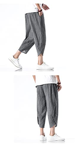 Men Hanfu Japanese Harajuku Wide-Leg Linen Pants Cotton Linen Cropped Trousers Plus Size 5XL Loose Summer Thin Pant 4