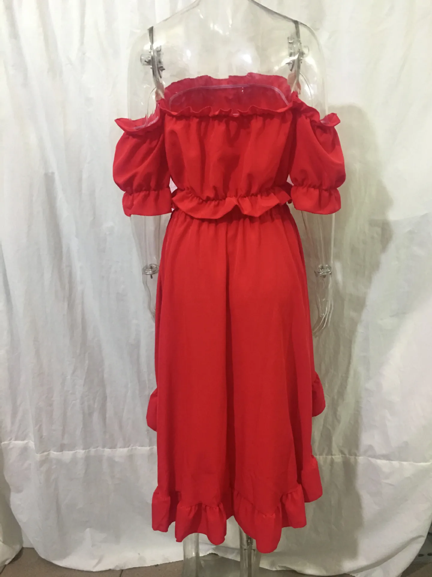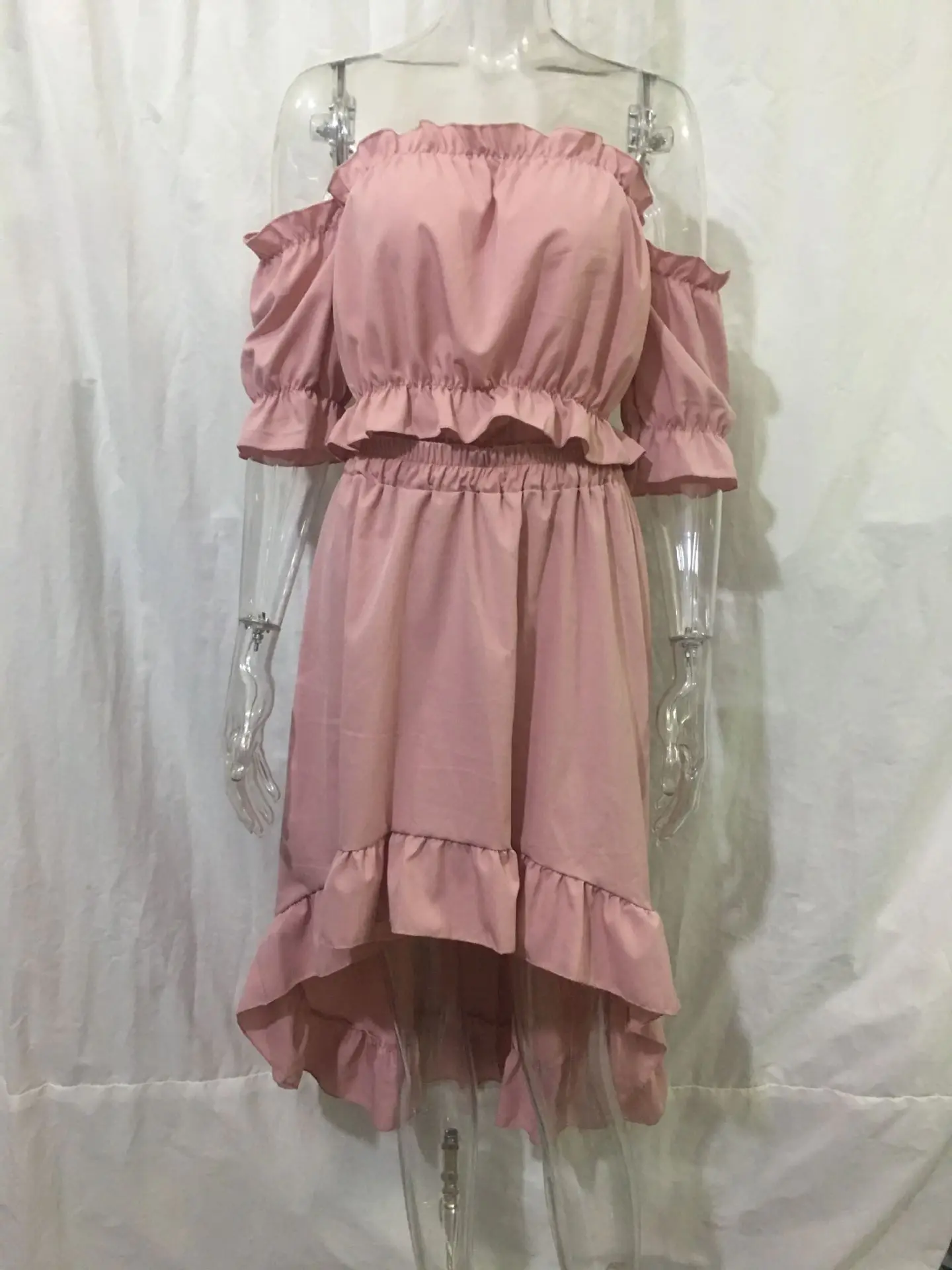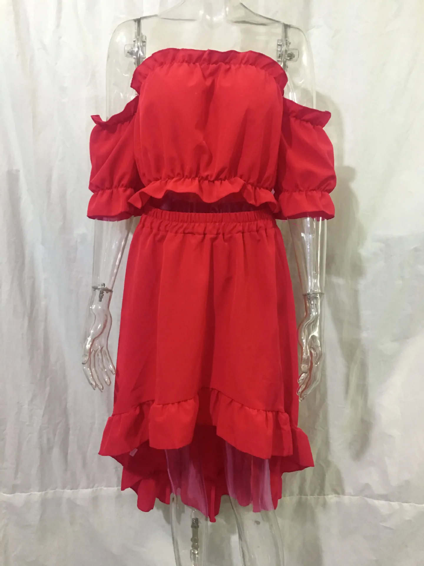 Ladies Two Piece Summer Sexy Short Sleeve Shirt And Slow Skirt Suit Solid Chic Off Shoulder, Puff Sleeve Short Top