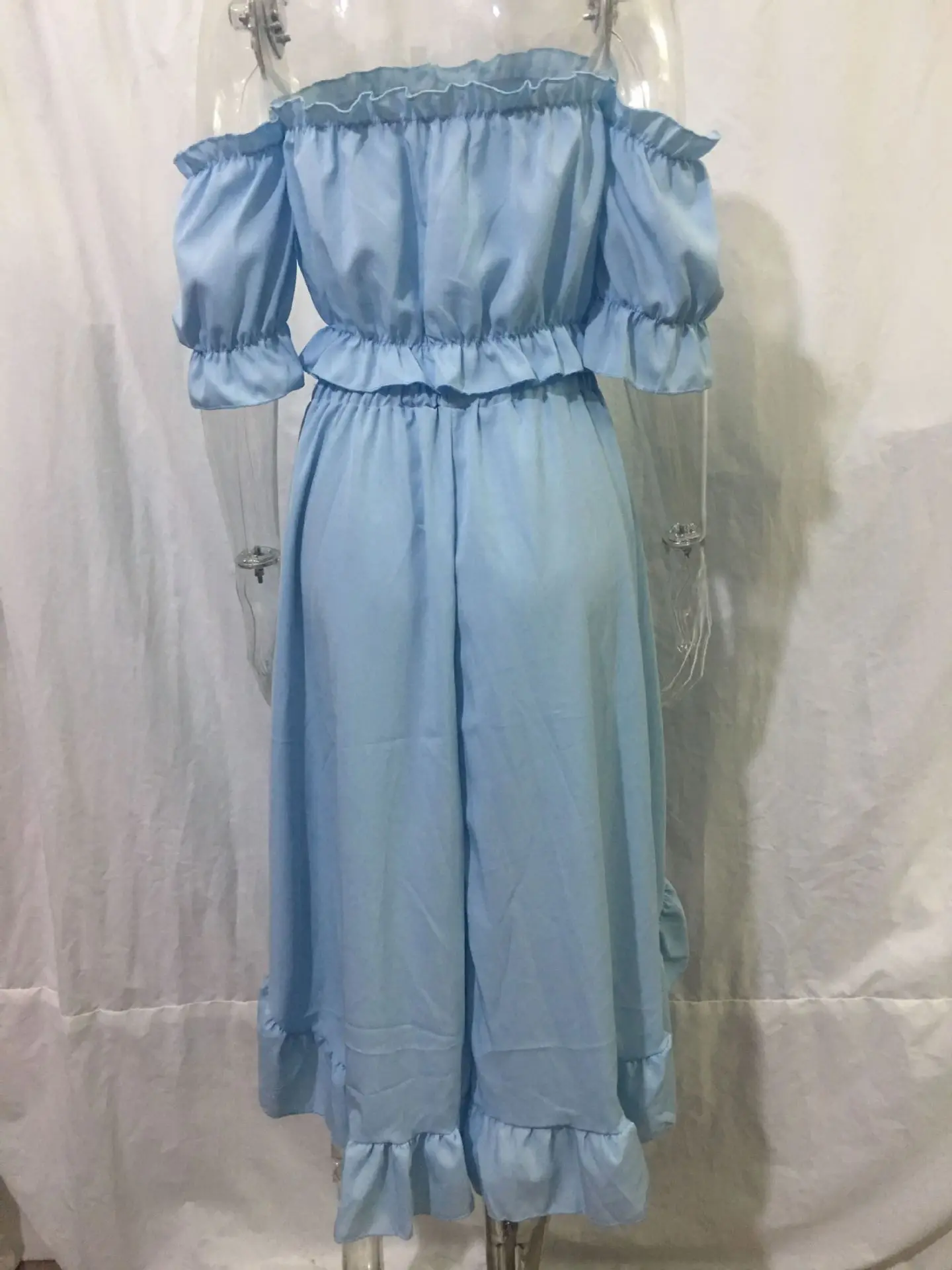 SpecificationsClothing Patterns: Loose FitDecoration: FoldsDresses Length: Mid-CalfMaterial: Polyester,Cotton BlendsPant Closure Type: Elastic WaistSleeve Style: puff sleeve