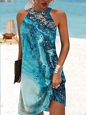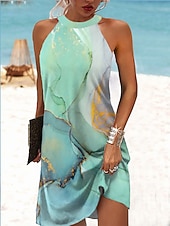 More information about Women's Mini Dress Petite Dress Petite Dress Sundress Summer Dress Halter Neck Dress Active Fashion Streetwear Outdoor Vacation Daily Regular Fit Ombre Color Block Marble Sleeveless Halter