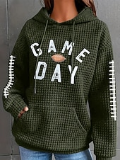 Highlights - Stay cozy and stylish this winter with our polyester women's hoodie - Loose fit for ultimate comfort and mobility - Featuring a trendy letter pattern - Keep warm with a hooded neckline - Perfect for any winter outfit