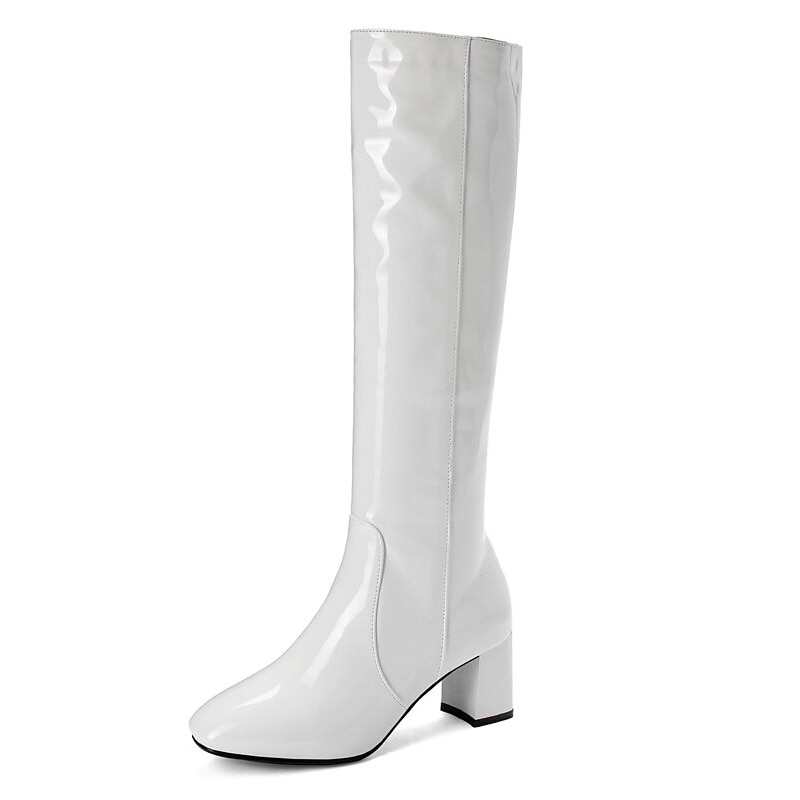 Women's White Knee-High Boots with Block Heel - Sleek Zip-Up Design for Winter Fashion 18