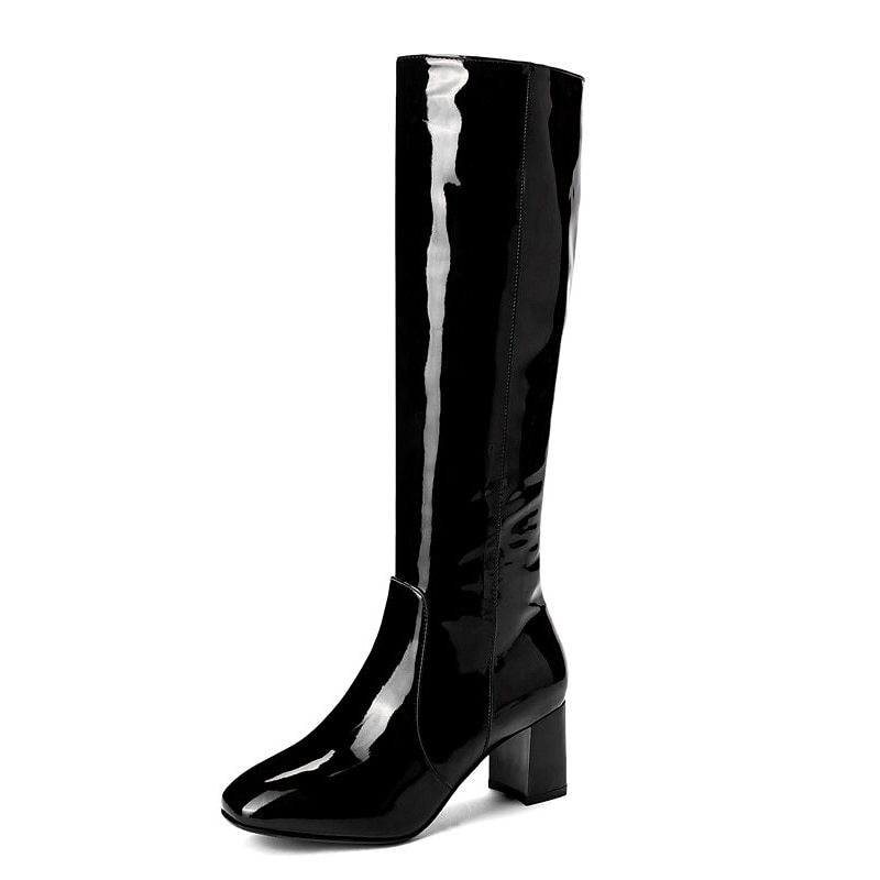 Women's White Knee-High Boots with Block Heel - Sleek Zip-Up Design for Winter Fashion 14