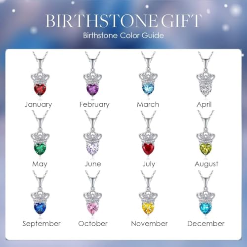 • ♛Girl's Gift♛ This princess crown heart birthstone necklace comes in a beautiful gift box,it is the best graduation gifts for daughter, niece, granddaughter, best friends or your love.