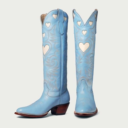 More information about Women's Cowboy Boots Wide Calf Knee High Cowboy Boots Western Embroidered Stars Almond Toe Chunky Heel Wedding Boots