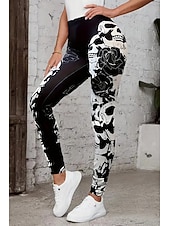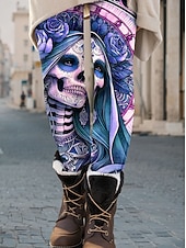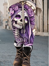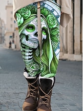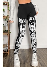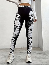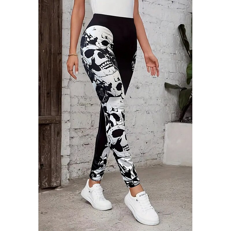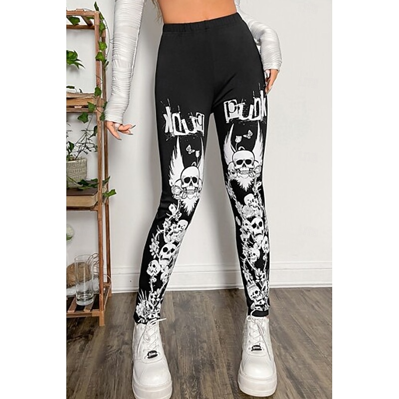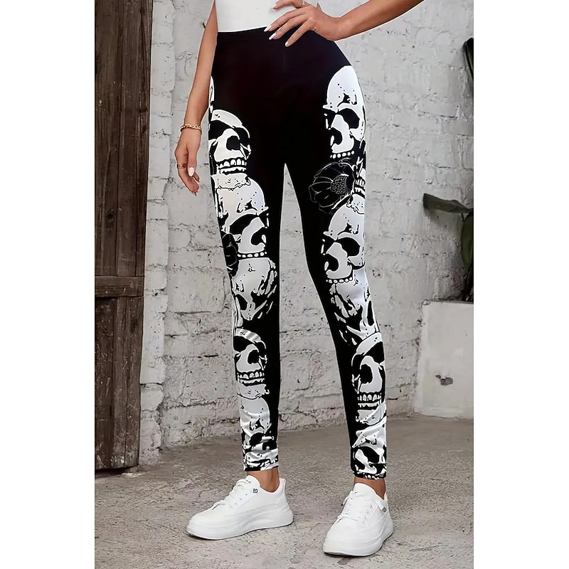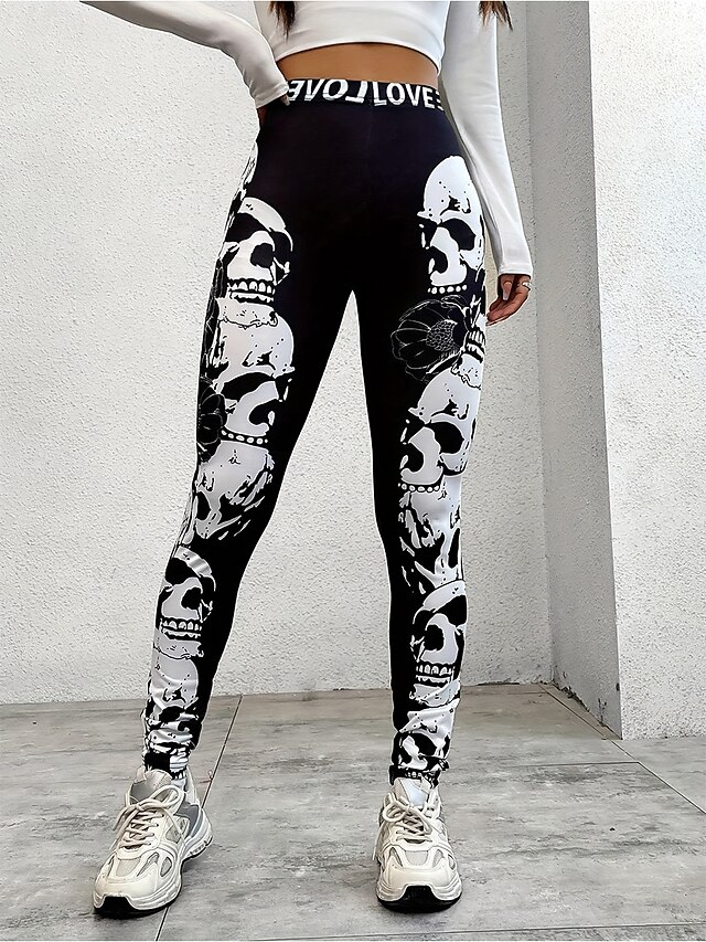 More information about Women's Leggings Vacation Vintage Fashion Full Length High WaistPantsHalloween Graphic Skull Printing Soft Breathable Stretchy Outdoor Vacation Street Black White Black-white Spring Fall Winter Slim