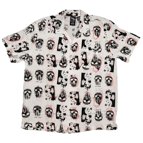 More information about Friday The 13th Jason Mask Scribble White Rayon Button-Up Shirt – Officially Licensed
