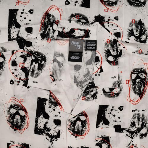 Friday The 13th Jason Mask Scribble White Rayon Button-Up Shirt – Officially Licensed 7