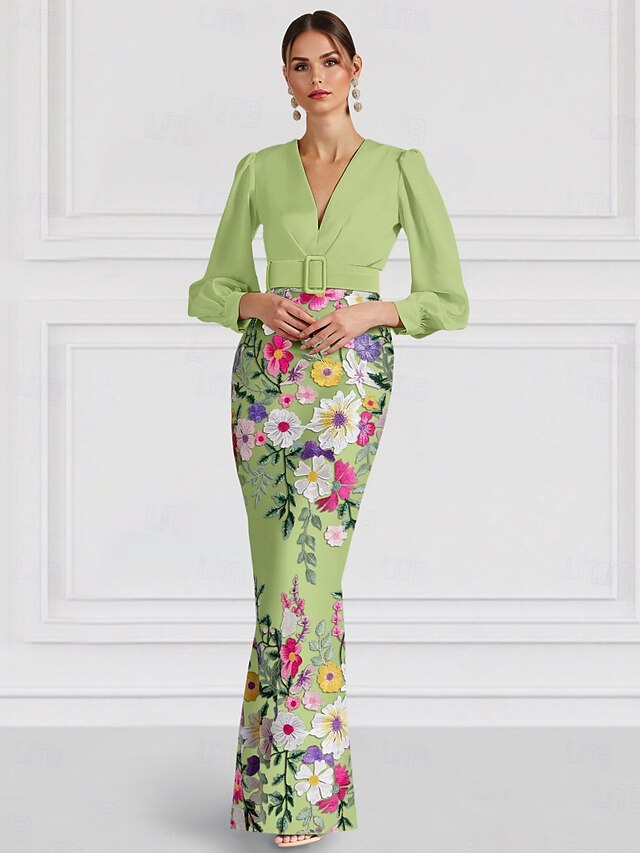 A-Line Evening Gown Elegant Dress Formal Wedding Floor Length Long Sleeve One Shoulder Satin with Bow(s) Slit Embroidery 1