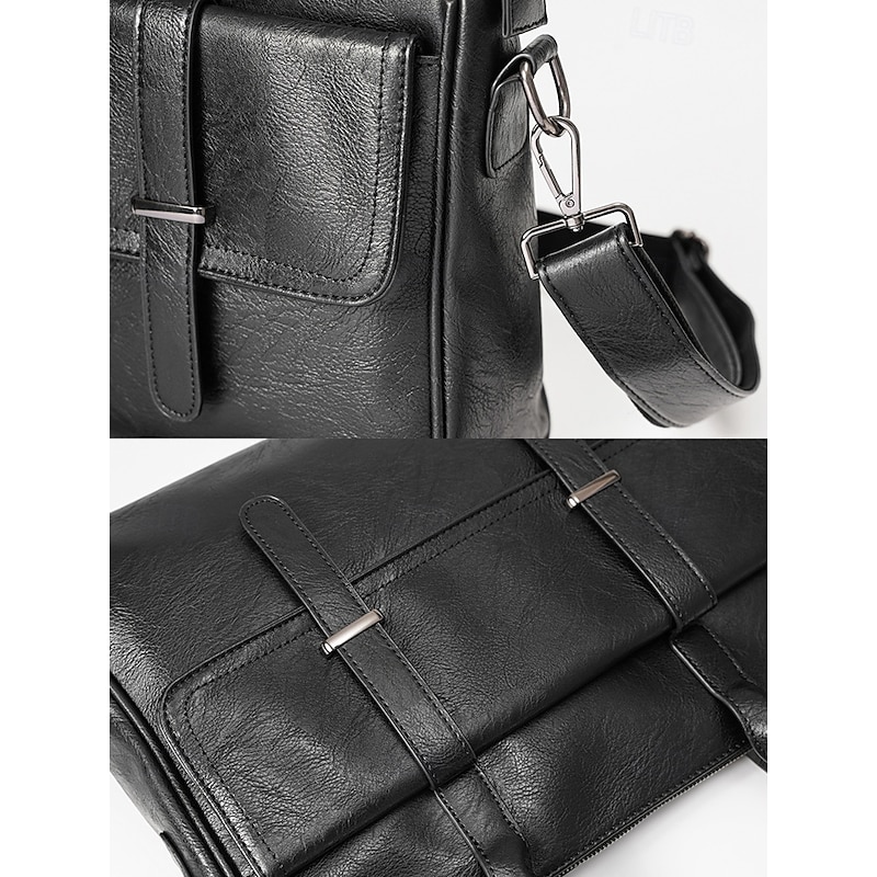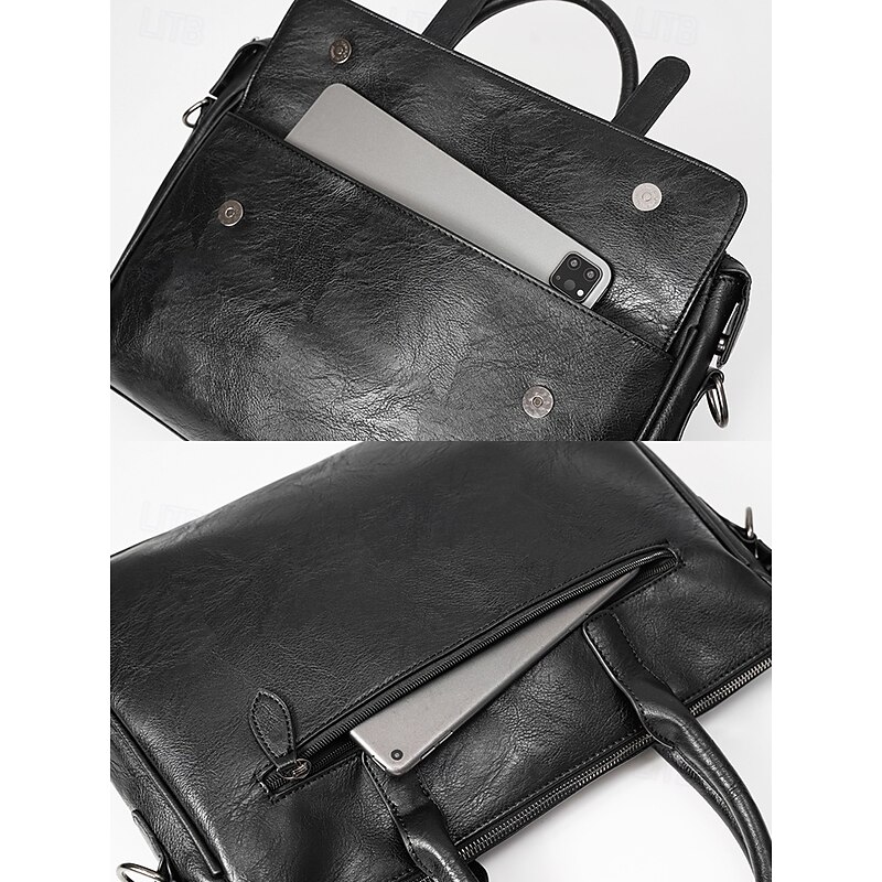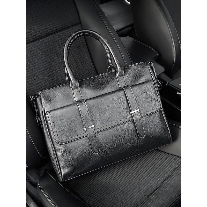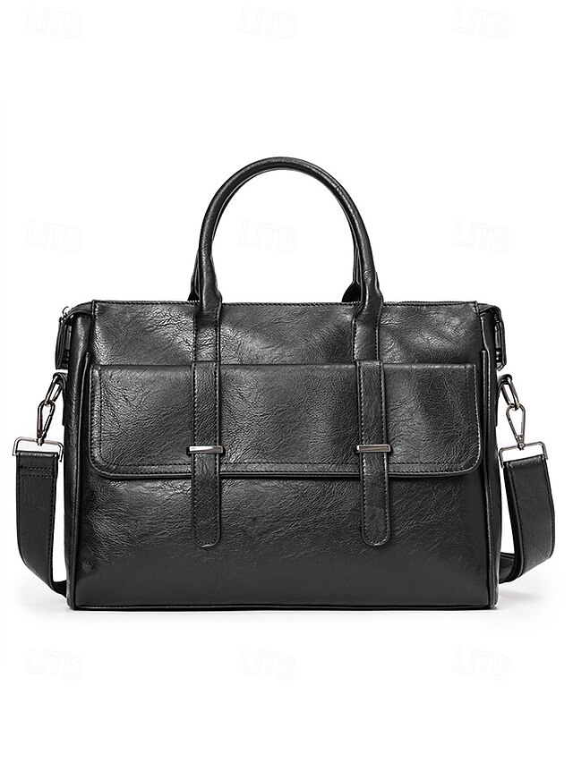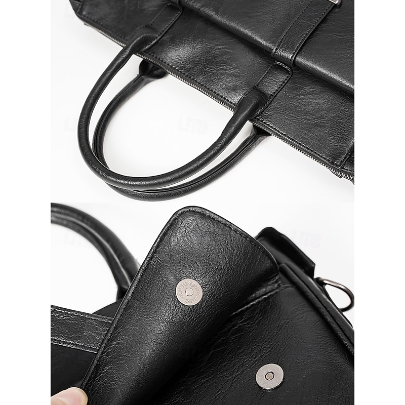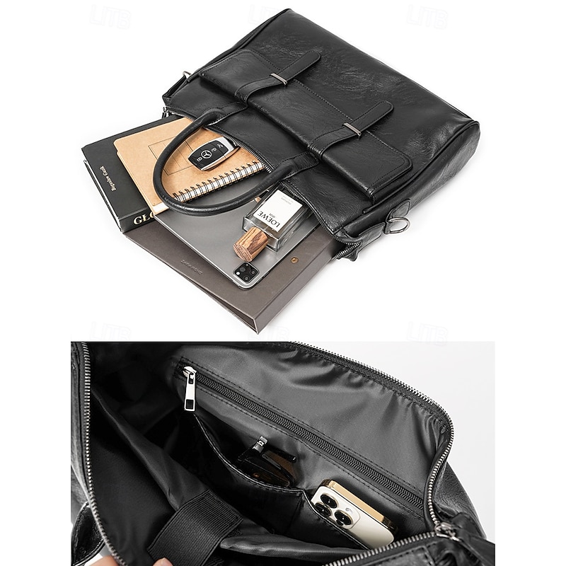 $46.99 - Men's Black Leather Tote Briefcase - Large Business Tote with Top Handle and Laptop Compartment, Professional Office Bag for Work and Meetings 2025. Shop for cheap Men's Bags online? Buy at lightinthebox.com on sale today!